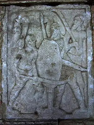 ![]() Cena da batalha no Troféu Trajano, em Adamclisi. | |||