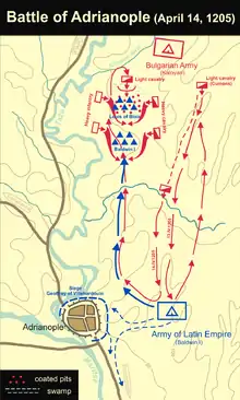 | Desfecho | Vitória decisiva búlgara e captura do imperador latino Balduíno I | ||