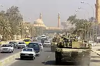 Após três semanas da invasão, a 3 de abril de 2003, tropas americanas da 3.ª Divisão de Infantaria avançaram sobre a capital Bagdá. A batalha durou nove dias e se encerrou oficialmente em 14 de abril. Em 1 de maio, o presidente americano George W. Bush declarou o fim da guerra (apesar do conflito ter continuado por mais oito anos).