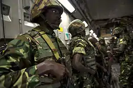 ![]() Soldado ruandês no aeroporto de Bangui, perto dos campos de refugiados, 19 de janeiro de 2014. | ||||