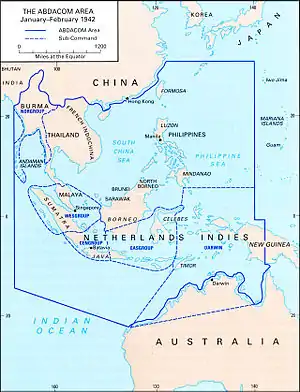 ![]() Mapa da área ABDACOM, com Bornéu apenas à esquerda do centro | |||