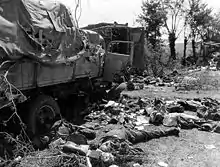 ![]() Tenente Klaptocz da 1ª Divisão Blindada Polonesa e o oficial americano, Major Leonard C. Dull, do 359º Regimento de Infantaria, 90ª Divisão de Infantaria, após a junção das duas unidades em Chambois, em agosto de 1944. | |||