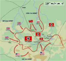 Após o fracasso da Operação Lüttich, os alemães foram obrigados a se retirarem para a cidade de Chambois. No dia 17 de agosto, o 1º Exército Canadense tomou a cidade de Falaise de modo que os alemães foram encurralados pelas forças armadas polonesas, canadenses e norte-americanas. Walther Model, o comandante do Grupo de Exércitos B (o líder do exército alemão na França), ordenou que aos 5º e 7º Exércitos a se retirarem para o rio Dives e assumir uma posição defensiva para lutar contra os norte-americanos.