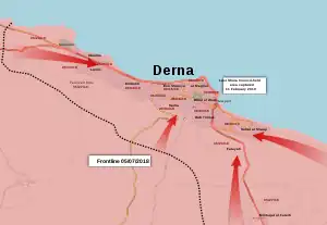 24. «Forces of Libya's east-based warlord bombard Derna | The Libya Observer». www.libyaobserver.ly (em inglês). Cópia arquivada em 2 de outubro de 2018