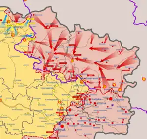 As forças russas da 74.ª Brigada de Rifles Motorizados Separada da 41.ª Armada Combinada[1] foram derrotadas por tanques da 30.ª Brigada Mecanizada e pela artilharia da 17.ª Brigada de Tanques das Forças Armadas da Ucrânia, à medida que os russos tentavam atravessar o rio Donets perto das aldeias de Dronivka, Bilohorivka e Serebrianka.