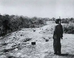 ![]() Um fuzileiro norte-americano junto a algumas posições de combate no "Hill 123" em "Edson's Ridge" após a batalha. | |||