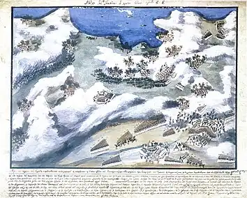 O exército otomano sob o comando de Omer Vrioni, após sua derrota dos gregos na Batalha de Alamana e a execução de seu líder Athanasios Diakos, planejou atacar o Peloponeso com um exército de 11 000 homens.[1][2][3] No entanto, seu exército foi recebido por um grupo grego de 120 homens, sob o comando de Odysseas Androutsos, que havia se barricado dentro de uma velha pousada. O exército otomano cercou a área e atacou a pousada, mas foi rechaçado com pesadas perdas. À noite, enquanto o exército otomano interrompeu seus ataques para trazer alguns canhões para bombardear a pousada, os gregos escaparam da pousada e encontraram segurança nas montanhas antes que os canhões chegassem.