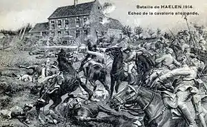 ![]() Postal da época com o "fracasso da cavalaria alemã" em Halen | |||