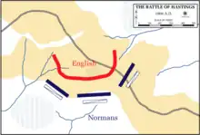 A batalha de Hastings foi travada em 14 de outubro de 1066 entre o exército franco-normando do duque Guilherme II da Normandia (r. 1035–1087) e um exército inglês sob o rei anglo-saxão Haroldo II (r. 1066), durante a conquista normanda da Inglaterra. Ocorreu cerca de 11 quilômetros a noroeste de Hastings, perto da atual cidade de Battle, em East Sussex, e teve como resultado uma decisiva vitória normanda.