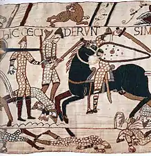 ![]() Extrato da tapeçaria de Bayeux, retratando a batalha. | |||