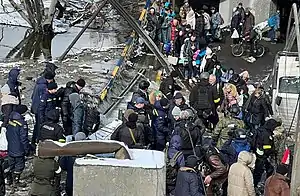 Em 5 de março de 2022, as forças ucranianas começaram a evacuar civis de Irpin para Kiev a pé, embora uma ponte destruída tenha complicado os esforços.[37][38]