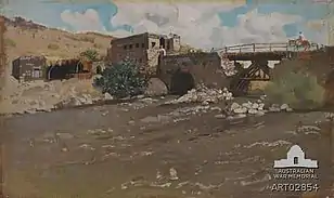![]() Pintura de 1919 da ponte reparada pelos australianos, da autoria de George Lambert | |||