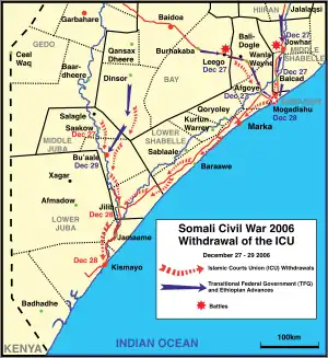 - Somalia: ICU loses Jowhar, another key town 90KM from Mogadishu Arquivado em 2007-01-17 no Wayback Machine SomaliNet