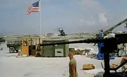 ![]() Helicóptero de Mike Durant, Super 64, sobrevoando a costa de Mogadíscio em 3 de outubro de 1993. | |||