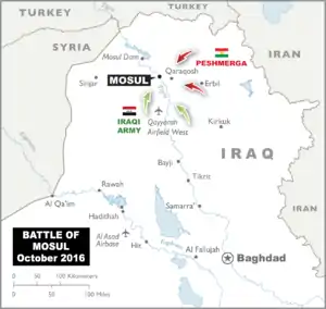 ![]() ![]() Mapa mostrando a ofensiva inicial contra Mossul. | |||