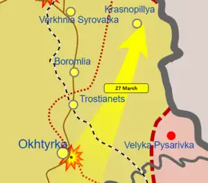 Em 26 de março, as forças russas se retiraram de Okhtyrka.[1]