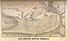 A Batalha de San Jacinto, foi travada em 21 de abril de 1836, dias atuais Condado de Harris, Texas, foi a batalha decisiva da Revolução do Texas. Liderado pelo general Sam Houston, o exército texano derrotou o exército mexicano do general Antonio López de Santa Anna, em uma luta que durou apenas 18 minutos. Cerca de 630 dos soldados mexicanos foram mortos e 730 capturados, enquanto apenas 9 texanos morreram.[3]