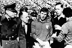 ![]() O italiano Giorgio Ferrini é retirado do campo por polícias dos Carabineiros do Chile | |||||||