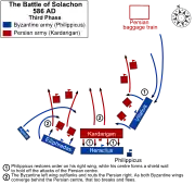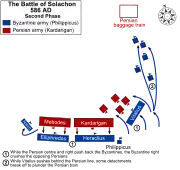 A vitória de Solacão permitiu aos bizantinos recuperar a vantagem na região de Tur Abdim e, em seu rescaldo, conseguiram restabelecer o controle deles sobre a região em torno de Dara.[27] A guerra continuou por alguns anos sem uma decisão até a revolta de Barã Chobim (futuramente conhecido como Vararanes IV) que levou o xá persa legítimo, Cosroes II (r. 590–628), a procurar refúgio no território persa. Uma expedição conjunta restaurou-o em seu trono e um tratado de paz foi concluído em 591 que deixou muito da Armênia nas mãos bizantinas.[28]