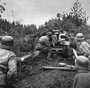 ![]() Arma antitanque finlandesa Pak 40 de 7,5 cm em ação. | |||