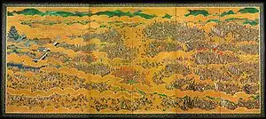 ![]() A Batalha de Tennōji, ataque ao castelo de Osaka. | |||