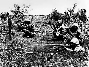 Fuzileiros americanos lutando contra os japoneses em Tiniã