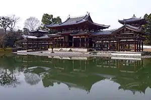 ![]() O Salão da Fênix do Templo Byodo-in, na frente da qual ocorreu a Batalha de Uji | |||