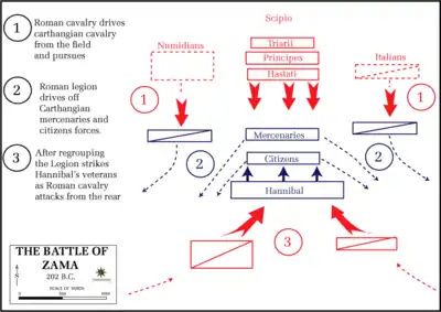 A Batalha de Zama, travada em 19 de outubro de 202 a.C.,[1] foi uma batalha decisiva da Segunda guerra púnica. O exército da República Romana, liderado por Cipião Africano, derrotou as forças de Cartago lideradas por Aníbal. Logo após essa derrota, o senado de Cartago assinou um tratado de paz, terminando assim uma guerra de quase 20 anos.