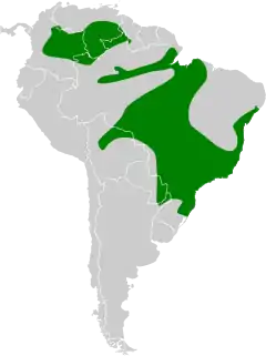 Pode ser encontrada nos seguintes países: Argentina, Bolívia, Brasil, Colômbia, Paraguai, Peru e Venezuela.[1]