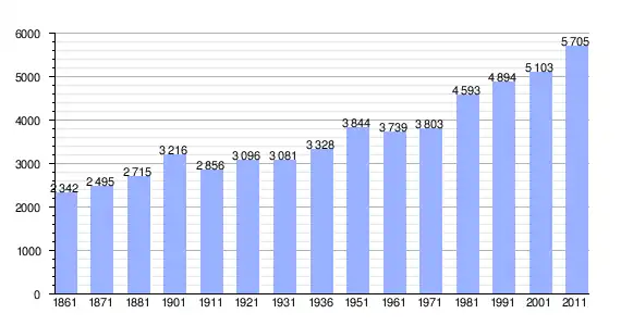 | Variação demográfica do município entre 1861 e 2011[3] |