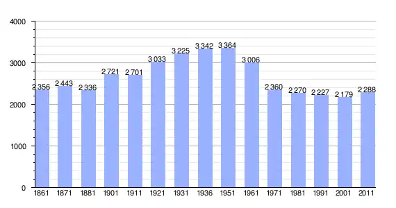 | Variação demográfica do município entre 1861 e 2011[3] |