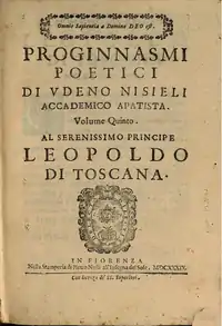 - Proginnasmi poetici (versão em 3 volumes, mas que originalmente constituía-se de 5 livros). O volume 5 desta obra mais tarde seria apresentada a Leopoldo de Toscana que a ela se referiu como obra de grande erudição, que pondera os méritos dos grandes escritores do universo, e revela os artifícios mais singulares da Poética.[9]