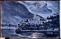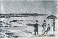 Gravura pintada em novembro de 1837 por Benjamin Mary do Imperador Dom Pedro II no mirante, observando a paisagem da Fazenda de Santa Cruz.
