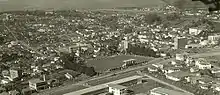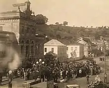 Ainda em 1919, a linha ferroviária é instalada nos sinuosos vales do município, desenvolvendo um novo ritmo ao comércio e a indústria do município. O trem facilitou a circulação de mercadorias enriquecendo a oferta do comércio local, fazendo com que diversas empresas transferissem suas sedes para as proximidades da estação ferroviária.[48] Em 1933, a população do município era atendida por 248 estabelecimentos comerciais, sendo que no mesmo ano é concluída a construção da torre da Igreja Santo Antônio. No mesmo ano iniciou-se o calçamento da rua Marechal Deodoro, no centro da cidade. A época também é marcada pelo surgimento de estabelecimentos especializados em tecidos e confecções.[45]