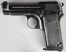 A Glisenti Modello 1910 , foi a primeira pistola semiautomática produzida na Itália adotada pelos militares italianos. Projetada por Betel Revelli foi originalmente projetada para munições 7.65 mm ,[carece de fontes] que era semelhante ao 7,65×21mm Parabellum. Mais tarde, tendo o Exército italiano julgado o 7.65, um calibre muito leve para o uso militar, e tendo lançado um concurso para pistolas de 9mm, em vez disso, a Metallurgica Bresciana già Tempini, dona do projeto, adaptou a pistola Glisenti para disparar uma munição 9mm. Portanto, apesar de ser o cartucho de dimensões idênticas às do 9mm Luger (que foi obtida da mesma maneira, com o 7,65×21 mm Parabellum, mas aumentando a carga) a munição 9mm Glisenti tem uma carga que é cerca de 1/4 mais leve que a carga militar do 9mm luger. A Glisenti Modelo de 1910, sofreu no entanto, de uma falta de robustez devido ao fraco design do quadro. Esta falta de integridade estrutural levou todas as tensões de disparo a ser absorvida por apenas um dos lados do trilho.[2]