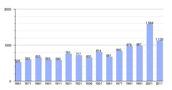 | Variação demográfica do município entre 1861 e 2011[3] |