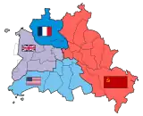 Ao término da Segunda Guerra Mundial, Estados Unidos e União Soviética entraram em conflito pela posse e poder transitório na Alemanha. Durante a Guerra Fria, ocorreu um acordo que permitiu às três das potências ocupantes (França, Reino Unido, Estados Unidos) o livre acesso ao setor ocidental da cidade, que era um enclave na zona sob ocupação soviética.[3]