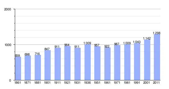 | Variação demográfica do município entre 1861 e 2011[3] |