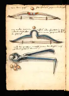 Esta nova variedade de besta caracterizava-se por disparar esferas de chumbo (os pelouros).[21]