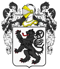 - De prata, um leão de negro, armado e lampassado de vermelho, Timbre: o leão do escudo.