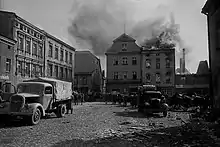 Em 1945, as tropas alemãs foram expulsas da cidade pelas unidades do 117.º Corpo de infantaria do 21.º Exército e do 7.º Corpo de guarda mecanizado independente da composição da Primeira Frente Ucraniana. Cento e trinta e sete soldados do Exército Vermelho foram mortos na luta pela cidade. No local de seu enterro original, um Monumento de Gratidão ao Exército Vermelho foi erguido na Praça do Castelo.[64] Como resultado da luta, a fachada leste da praça principal com a prefeitura foi incendiada.