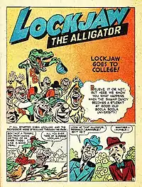 Arte de Lockjaw, publicada em Punch and Judy Comics vol 3. #1 (outubro de 1947)