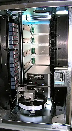 Bibliotecas de fita menores, com somente uma unidade de fita e um robot são conhecidas como autoloaders.