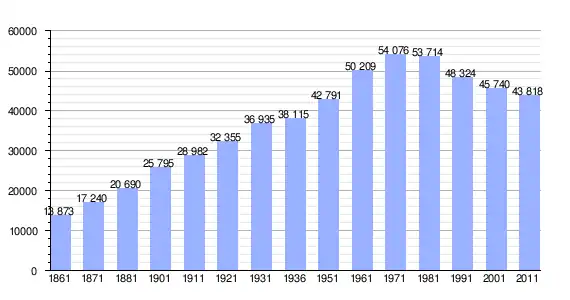 | Variação demográfica do município entre 1861 e 2011[9] |