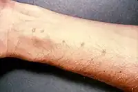 Coçar a erupção cutânea pode levar a uma infecção bacteriana secundária da pele, por isso é importante evitar coçar. Alguns tratamentos comuns para a coceira incluem creme corticosteroide, loção anti-coceira e aplicação de compressas frias a erupções cutâneas, tomar banho com sais de Epsom ou bicarbonato de sódio e, em casos de coceira intensa, cremes e loções fortes prescritos, anti-histamínicos orais também podem ajudar a aliviar a coceira.[14][19]