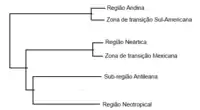 Baseado em táxons animais. Dividiu em Leste não Andino e Oeste andino, e depois dividiu em subdivisões menores.