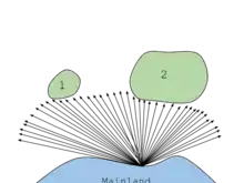 A teoria da biogeografia insular propõe que o número de espécies encontradas em um ambiente insular não perturbado ("ilha") seja determinado pela imigração e extinção. Além disso, diz que as populações isoladas possam seguir diferentes rotas evolutivas, como mostra a observação de tentilhões de Darwin nas Ilhas Galápagos. A imigração e a emigração são afetadas pela distância de uma ilha a uma fonte de colonos (efeito de distância). Normalmente, essa fonte é o continente, mas também pode ser outras ilhas. As ilhas mais isoladas têm menos probabilidade de receber imigrantes do que as ilhas menos isoladas.
