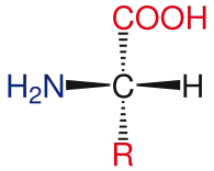 A estrutura geral dos aminoácidos essenciais inclui um grupo amino primário, um grupo carboxilo e o grupo funcional unido ao carbono α. Os diferentes aminoácidos se identificam pelo grupo funcional. Como resultado dos três grupos diferentes unidos ao carbono α, os aminoácidos são moléculas assimétricas. Para todos os aminoácidos essenciais, exceto a glicina, o carbono α é um centro quiral. No caso da glicina, o carbono α tem dois átomos de hidrogênio, o que agrega simetria a esta molécula. Com a exceção da prolina, todos los aminoácidos encontrados na vida tem a conformação L-isoforma. A prolina tem um grupo funcional no carbono α que forma um anel com o grupo amino.[25]