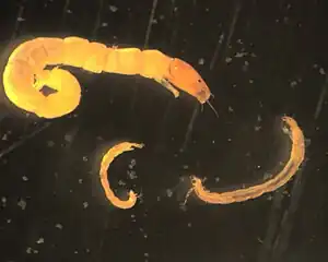 - Transportadores ascendentes — são organismos que vivem orientados de cabeça para baixo nos sedimentos, onde se alimentam em profundidade e transportam sedimentos através de suas entranhas para a superfície do sedimento.[14] Os principais grupos de transportadores ascendentes incluem as poliquetas escavadoras, como o anelídeo Arenicola marina, e diversas espécies de camarões talassinídeos.[15][16]