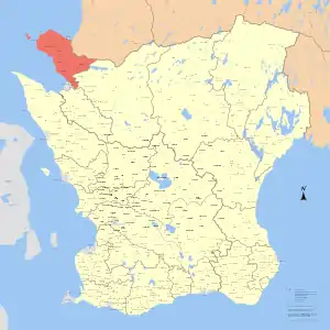 Está situada no noroeste da província histórica da Escânia, na costa do estreito de Categate, e localizada entre a baía de Laholm e a enseada de Skälderviken.[1][2]